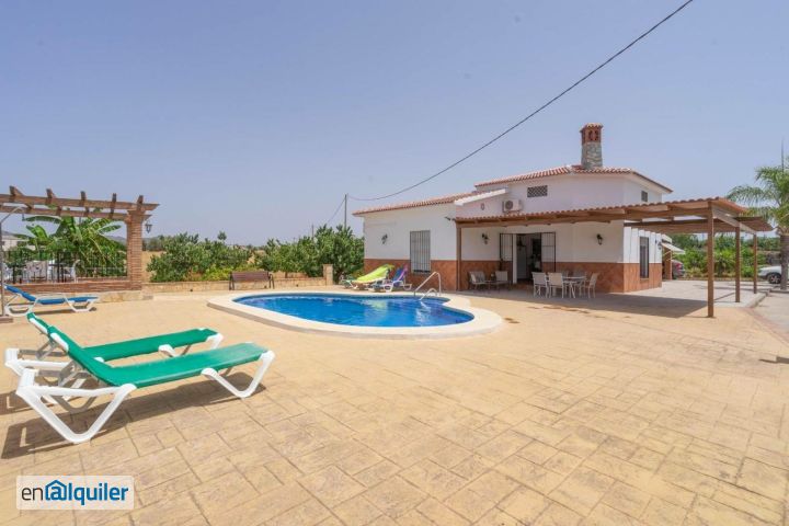 Se alquila de Noviembre a Mayo: Chalet de 196 m2 ( 159 m2 de vivienda y 37 m2 de porche cubierto con barbacoa) con piscina y muy buenas vistas en parcela de 3100 m2 vallada y con árboles frutales de todo tipo. Cerca de campo de golf y a menos de 20 minutos del aeropuerto. El acceso es asfaltado y tiene portón automático de entrada. Aire acondicionado en salón y dormitorios. Se alquila encuentra totalmente amueblado. La casa está distribuida en salón-comedor con chimenea, cocina, trastero-lavadero, 4 habitaciones ( una en suite ) y 3 baños ( uno exterior ). Se puede visitar ya. REFERENCIA: 75016