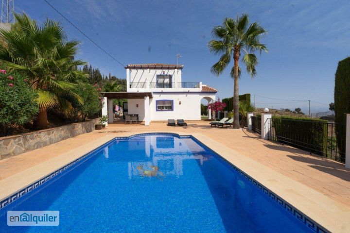 Chalet situado en zona rural de 217 m2 ( 130 m2 de vivienda, 35 m2 de terraza con espectaculares vistas, 45 m2 de área de barbacoa y 4 m2 de porche cubierto ) con piscina, en parcela de 5000 m2. Portón automático. Aire acondicionado con bomba de frio y calor. Se alquila AMUEBLADO. La vivienda tiene 2 plantas; en plata baja tiene salón-comedor con estufa de pelet, cocina independiente, 1 dormitorio y un baño con ducha; en planta alta tiene dos dormitorios en suite ( una de ellas con vestidor ) y con acceso a una terraza desde la que contemplar unas increibles vistas a la Sierra de Mijas y dos baños ( uno con bañera y otro con ducha ); en la zona de barbacoa tiene un baño y cuarto trastero o despensa. MANTENIMIENTO DE PISCINA Y JARDINES INCLUIDO EN EL PRECIO. REFERENCIA: 15665