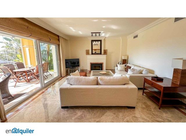 Villa pareada en Urbanización Santa Clara en alquiler de larga temporada. Esta elegante villa pareada ofrece el equilibrio perfecto entre confort, privacidad y una ubicación privilegiada. Situada a pocos minutos del centro de Marbella, cerca de las mejores playas de la zona y rodeada de algunos de los campos de golf más prestigiosos, esta vivienda es ideal para quienes buscan un estilo de vida tranquilo y sofisticado. Distribuida en dos plantas más sótano, la propiedad destaca por sus amplios espacios y su luminosidad. En la planta principal se encuentra un amplio salón con chimenea y zona de comedor, baño completo para invitados y cocina independiente. Desde esta planta se accede a una amplia terraza y al gran jardín privado, donde se ubica una piscina privada de gran tamaño con jacuzzi independiente, perfecta para disfrutar del clima mediterráneo y celebrar reuniones familiares o entre amigos. La planta superior alberga tres dormitorios, todos ellos con baño en suite, ofreciendo máxima comodidad e independencia a sus ocupantes. El dormitorio principal también cuenta con vestidor y terraza orientada al sur. Situada dentro de una de las urbanizaciones más exclusivas y solicitadas de Marbella, la villa cuenta además con seguridad 24 horas, piscinas comunitarias y cuidados jardines comunes. Santa Clara Golf se caracteriza por su ambiente tranquilo y residencial, ideal para quienes desean paz y privacidad sin renunciar a la proximidad de todos los servicios. A pocos minutos de la playa y de reconocidos chiringuitos, la propiedad se encuentra también cerca del prestigioso Hotel Los Monteros, el Hospital Costa del Sol y el icónico La Cabane Beach Club. Asimismo, dispone de colegios de primer nivel a escasa distancia, como el English International College. Esta propiedad se encuentra disponible para alquiler de larga temporada en esta agencia inmobiliaria con más de 30 años de experiencia en Marbella Centro y Milla de Oro.