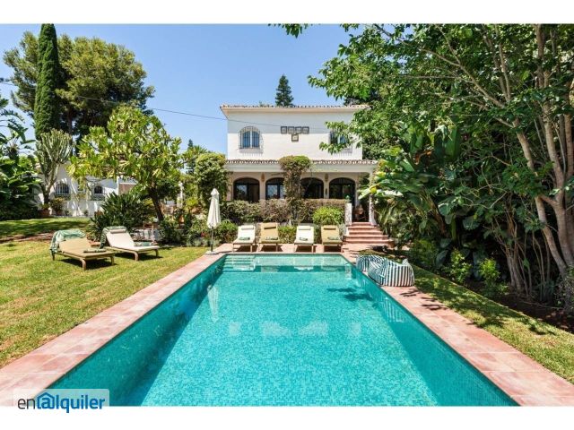 Disfruta de una estancia inolvidable en esta encantadora villa de estilo andaluz, idealmente ubicada en Nueva Andalucía, uno de los barrios más exclusivos de Marbella. Este amplio refugio cuenta con 4 dormitorios, 3 baños completos y 1 aseo, incluyendo una casita independiente?perfecta para familias o grupos que buscan comodidad y privacidad. Refréscate en la piscina de agua salada, disfruta de confort durante todo el año gracias al aire acondicionado individual en cada habitación, y relájate en el tradicional patio andaluz con zona de barbacoa al aire libre?ideal para cenas al fresco. A solo 5 minutos de Puerto Banús, tendrás acceso rápido a playas de primera clase, tiendas exclusivas, restaurantes y una animada vida nocturna. Además, la villa se encuentra a solo 40 minutos del Aeropuerto de Málaga, lo que facilita tanto tu llegada como tu salida. Ya sea que estés planeando una escapada relajante o unas vacaciones llenas de actividades en la Costa del Sol, esta villa ofrece el equilibrio perfecto entre lujo, ubicación y encanto auténtico.