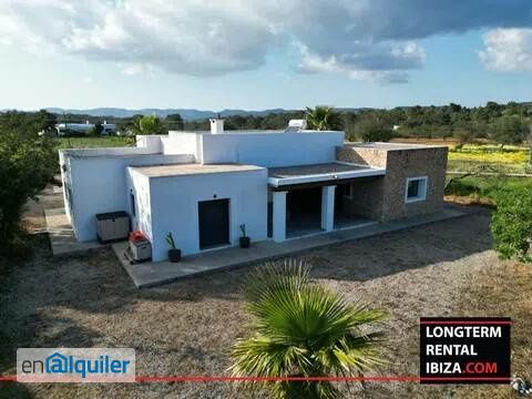 ANNUAL RENTAL - SANT RAFAEL. Newly Built Ibicencan-style Villa In A Peaceful Central Location. Available for long-term rental, this beautiful four-bedroom villa is ideally located near the village of Sant Rafael, right in the heart of the island, offering both privacy and excellent connections to Ibiza Town and the surrounding areas. Built approximately seven years ago, the property combines traditional Ibicencan aesthetics with modern construction quality, including thick insulated walls designed to ensure comfort and prevent humidity. Upon entering the house, a welcoming entrance hall with built-in storage leads to the first bedroom on the left, while the remaining bedrooms are located on the right-hand side. Straight ahead, the space opens into a cosy living room featuring a fireplace with an integrated ventilation system, creating a warm and comfortable atmosphere throughout the year. From the living area, there is direct access to a spacious covered porch as well as to the large, fully equipped kitchen with gas cooking, which is both bright and functional. Adjacent to the kitchen, a laundry room and additional storage space add practicality to the layout. The property offers four bedrooms in total, three of them double, including one en-suite, while the remaining bedrooms share a full bathroom. The layout is designed to provide both comfort and privacy, making it ideal for families or those seeking a quiet lifestyle in Ibiza. The house is equipped with air conditioning, fibre optic internet, solar panels for hot water and a rainwater collection system for sustainable use. Outside, the villa is set on an extensive 15,000 m² plot surrounded by greenery, palm trees and open countryside, offering a serene and natural environment. Covered parking spaces for two cars complete this well-maintained and functional home. This is an excellent opportunity to enjoy year-round living in a central yet peaceful location on the island. For more information or to arrange a viewing, please contact the agent.