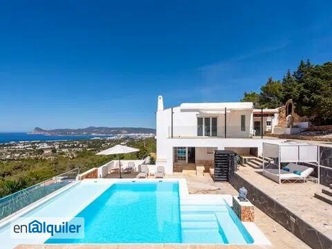 Royal Estates proudly presents this stunning 8 bedroom villa, which is divided over three levels with private pool and 180-degrees sea and sunset views. Nestled on a mountain hill on the west-coast of Ibiza, this unique and fully renovated property is a true gem, ready to fulfil your Mediterranean dreams and capture the essence of the Ibiza lifestyle. Important to mention is that the whole house is wheelchair accessible indoor and outdoor. INTERIOR El Refugio is a unique property spread over three living levels, each with its own private entrance, making it the perfect home for a large family or entertaining with friends, while maintaining privacy from other guests. The main floor, ground floor, and basement floor each offer distinct living areas, complete with living rooms, kitchens, bathrooms, and private driveways. Stepping inside, you will immediately be charmed by the interior design featuring high-quality materials. The house is fully renovated, counting a total of 8 bedrooms, 6 bathrooms and 2 guest toilets across a total of 391m2 of living spaces: First floor: Enter through the main entrance to find the dining area with an open kitchen and island, connected to a large terrace with stunning sea views. This floor also includes a living room, a separate TV room, 3 bedrooms, 2 bathrooms, and a guest toilet. Ground floor: Accessible from the parking area or poolside, this level includes a living room with an open kitchen, a guest toilet, 2 bedrooms with en-suite bathrooms, 2 additional bedrooms sharing a bathroom, and a laundry room. Basement level: Features a separate guest apartment under the pool, with a private driveway and parking for two cars. This apartment includes a kitchen, living room, bedroom, and bathroom, with beautiful sea views even from this lowest level. EXTERIOR Each level of the house offers plenty of outdoor terrace spaces for sunbathing or relaxing under covered areas. All terraces provide wide-open sea views, given the high mountain location. Well-maintained and tastefully renovated, the terraces are perfect for gatherings and relaxation. Pool area: Features an outdoor kitchen bar, comfortable lounge beds, a large private infinity pool with a waterfall feature, and an outdoor shower. Enjoy the utmost privacy from neighbouring houses and witness the most beautiful sunsets every evening. Garden features: Require minimal maintenance while creating a beautiful Mediterranean green oasis around the house. The entire property is fenced for privacy and security. Multiple terraces: Offer outdoor living features, including a private terrace connected to the main bedroom. Practical storage spaces are also available. LOCATION Perfectly situated high on a hill close to the beaches of Cala Conte and Cala Bassa, this villa offers easy access to nearby restaurants, supermarkets, and other amenities. Blending modern comforts with the natural beauty of Ibiza?s west coast to enjoy the beautiful sunsets for a comfortable lifestyle experience. Whether as a permanent home or vacation retreat, El Refugio invites you to experience a luxurious Mediterranean lifestyle at its finest. KEY FEATURES Wheelchair access throughout the entire property, both indoors and outdoors Divided over 3 living levels, each with its own private entrance Stunning sea and sunset views from each level Fully renovated and turnkey ready Large family home counting a total of 8 bedrooms Perfect for entertainment with ample privacy Do not hesitate to schedule a visit with us. This unique opportunity is a true gem that you must see to appreciate the large spaces, stunning sea views and breathtaking sunsets!