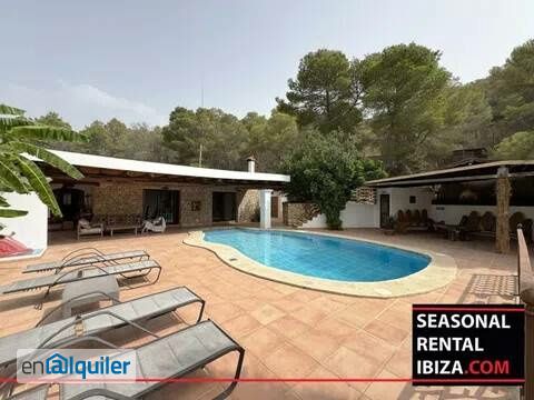 SEASONAL RENTAL - KM4 SAN JOSÉ. 5-Bedroom Ibicencan Home with Pool, Guest Suite & BBQ Area Located in the sought-after KM3 area, just minutes from Ibiza Town and Sa Carroca, this charming villa offers privacy, comfort, and authentic island living. The main house features four bedrooms, two of them ensuite, a spacious fully equipped kitchen with new appliances, a bright living-dining room with a solid wood table for 10, a bamboo sofa, and a fireplace. A laundry room and an interior patio with a mature carob tree and planters for a vegetable garden add character and functionality. Outside, you?ll find a fifth independent ensuite bedroom with a walk-in wardrobe, as well as a fully equipped BBQ area with fridges, an exterior dining table, and a bathroom facing the pool. The property is fully fenced and includes a garage, well water, sound system, air conditioning, electric gate, and alarm system. A peaceful and well-located home, perfect for year-round island living. Schedule a private viewing with our agent.