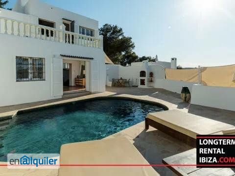ANNUAL RENTAL - SANTA EULALIA. Mediterranean charm with panoramic views. Perched on the peaceful hillside of Puig d?en Fita, Casa Turquesa is a unique 1970s Mediterranean-style home, recently renovated to offer a perfect combination of character, comfort, and spectacular views. Located in the sought-after and quiet residential area of Buenavista, the house enjoys absolute peace, free from traffic noise, and just five minutes from the center of Santa Eulalia. With a constructed area of 200 m² and surrounded by a 500 m² landscaped garden with fruit trees, this property retains original architectural details such as its arched entrance, lending a timeless and authentic feel. The interior offers open-plan living spaces integrating a living room, dining room, and fully equipped kitchen, seamlessly connecting to several outdoor terraces. From the rooftop terrace, you can enjoy stunning panoramic views of the sea and Tagomago Island. The house has three double bedrooms, including a spacious master suite with a private bathroom and terrace, and two full bathrooms, one with a bathtub. Outside, a cozy pool area with sun loungers, umbrellas, and an outdoor shower allows you to enjoy the Ibizan sun in complete privacy. There?s also an outdoor dining area with a barbecue, ideal for al fresco dining year-round. Extras include air conditioning in all rooms, high-speed Wi-Fi, a Smart TV, a separate laundry room with a washer and dryer, an alarm system, and a private garage. Located just a 15-minute walk from s?Alga Beach and less than 25 minutes from Ibiza Town and the airport, Casa Turquesa offers the ideal balance of privacy, comfort, and proximity to the island?s key attractions. Schedule a viewing with our agent.
