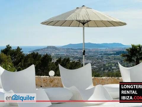 11 MONTHS RENTAL - CAN FURNET. Breathtaking six bedroom mansion in exclusive Versace design. in the luxury area of can furnet with 24 hours security, restaurant and tennis club inside the resort. The Main house got built over three floors with extra-large sliding windows that gives you a spectacular panorama view over Ibiza. On the ground floor there?s The outstanding miami style living room that lets you appreciate an iconic selection of art also its including a XXL daybed that gives you the joy of a stunning view to Dalt Vila, attached to it the american style kitchen with cooking isle in the middle and direct access to the gigantic 50m2 pool On the first floor you?ll find The 50m2 magnificent master bedroom with en-suite bathroom having a private 20m2 terrace giving you panoramic views of the surrounding countryside and to the little sister of Ibiza, Formentera. The second floor houses the other two bedrooms that have a shared bathroom with the benefician of a jacuzzi. In the back of the villa overlooking the unique tropical garden, you have a two bedroom apartment equipped with its own kitchen and bathroom. As a special getaway you have a small separate bedroom on the bottom of the main house with private bathroom The stupendous 1000m2 plot lets you enjoy three chillout areas on four levels, with three fish ponds, external bar just the right place to enjoy a private sunset with friends Schedule your viewing with our agent.