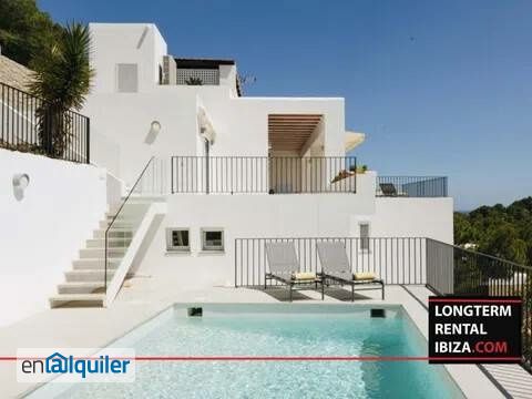 11 MONTHS RENTAL - CAN PEP SIMO. Discover the perfect Ibiza retreat with this stunning villa, offering breathtaking panoramic views of Ibiza Town, the sea, and the marina. Located in one of the island?s most prestigious areas, this home provides both tranquillity and proximity to the best Ibiza has to offer. Just five minutes from Ibiza Town, Sa Punta, Talamanca Beach, and the charming village of Jesús, where you?ll find supermarkets, pharmacies, and all essential services. The renowned Marina Botafoch, with its exclusive restaurants and nightlife, is also just moments away. This beautifully designed villa combines modern decor with traditional Ibizan charm, creating a stylish yet inviting atmosphere. In the upper floor there?s an expansive terrace with spectacular views, comfortable lounge seating, and an outdoor dining table for up to 10 guests, a spacious living area with contemporary furnishings, fully equipped modern kitchen, guest toilet with laundry area and a private swimming pool. In the lower floor there are five beautifully designed bedrooms, all with double beds. Three of the bedrooms feature en-suite bathrooms, while the other two share a spacious bathroom. Equipped with high-speed internet, ducted air conditioning in the living room and kitchen, and individual air conditioning units in each bedroom, this home ensures maximum comfort. The villa also offers shaded parking for up to three vehicles. Experience luxury living in Ibiza with this spectacular villa, where breathtaking views and elegant design come together in perfect harmony. POSSIBILITY FOR SEASONAL RENTAL.
