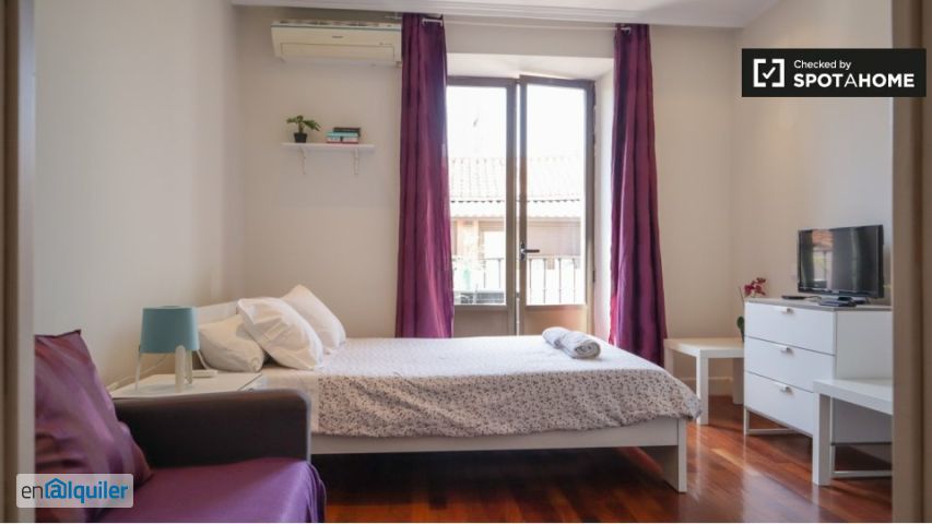 Se alquila monoambiente amueblado en Calle Del Olmo. La propiedad incluye aire acondicionado y balcón.