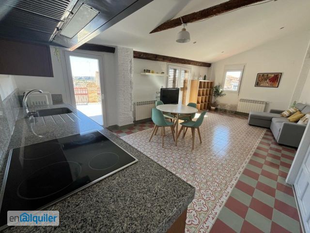 SE ALQUILA APARTAMENTO CON TERRAZA en el centro de Alcañiz. Salón - comedor - cocina con acceso a terraza, dormitorio matrimonio con armario empotrado, baño con ducha, dormitorio individual, totalmente amueblado y equipado con calefacción individual de gas ciudad, Aire Acondicionado, carpintería exterior de PVC y terraza con vistas. ASCENSOR DISPONIBLE 15 DE MARZO DE 2026