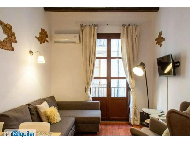 IDEAL FOR STUDENTS: 1-bedroom apartment RENTAL CONDITIONS: Rent: (1.100?) Deposit: 1 month (returned at the end of the contract) Water and electricity bills: 150? Agency services: (1.330?) HOUSE DESCRIPTION: Located on the first floor with a private elevator, the apartment is 37 m2 and has 1 bedroom and 1 full bathroom. The living room is located in the same area as the open-plan kitchen, equipped with all the necessary furniture (sofa, TV stand, TV, dining table) and with access to a balcony. The open-plan kitchen is in perfect condition and equipped with all the necessary appliances (refrigerator, oven, ceramic hob, extractor hood, washing machine). 1 DOUBLE ROOM The room has a double bed with a mattress, a built-in wardrobe, nightstands, lamps, and decorative items. The bathroom is in very good condition, with toilets, a vanity unit with a mirror, and a shower with a screen. HOME FEATURES: - Fully furnished. - Air conditioning (hot and cold). - Double-glazed windows. - Exterior balcony. - Catalan vaulted ceiling. LOCATION: Great home located in Ciutat Vella, surrounded by all kinds of shops, bars, restaurants, supermarkets, leisure areas, and public transportation.