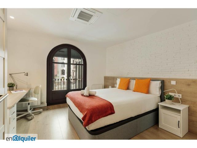 These apartments with 6, 5 or 3 bedrooms and 2 or 3 bathrooms are modern and elegant They are located in the attractive L''Eixample district, 5 minutes walking from Catalonia Square and the Plaça Universitat and Passeig de Gràcia metro stations that connect with the entire city. It is situated in a lively area with numerous bars and restaurants. They feature mosaic floors and modernist-style doors that make the apartment very cosy. The apartments are exterior-facing and have a balcony, heating, air conditioning and Wi-Fi connection. The living room has comfortable sofas and television. The kitchen is fully equipped with oven, microwave, refrigerator, ceramic hob, washing machine and dryer. The spacious and bright bedroom has a balcony with views of Balmes Street, a desk with natural light and a wardrobe. Additionally, the bed comes with a storage base which provides more storage space. The apartment is provided with towels and bed linen upon arrival. The photographs shown are a selection of various apartments in the same building. Apartments may vary in decoration and space distribution, but all have the same style. A specific apartment will be assigned upon arrival. - Prices for bookings of minimum 3 months. For shorter bookings, please consult prices. Accommodation prices and management expenses are subject to contract duration and advance notice of apartment entry date. 80? utilities Deposit: (Subject to length of stay) Final Cleaning: 80? - Agency fees: * 1-2 months: 200? + VAT * 3-5 months: 450? + VAT * 6-9 months: 750? + VAT * 10-11 months: 980? + VAT Our reception is located at number 1 Passatge Sert, where you can collect your key between 9:00 and 20:00 Monday to Friday (except holidays). If your arrival is on Saturday or Sunday (or a weekday holiday), key collection is at number 228 Aribau Street. For corporate bookings, 21% VAT must be added to the published price. This room is rented exclusively for recreational, vacation, or long-term tourist stays