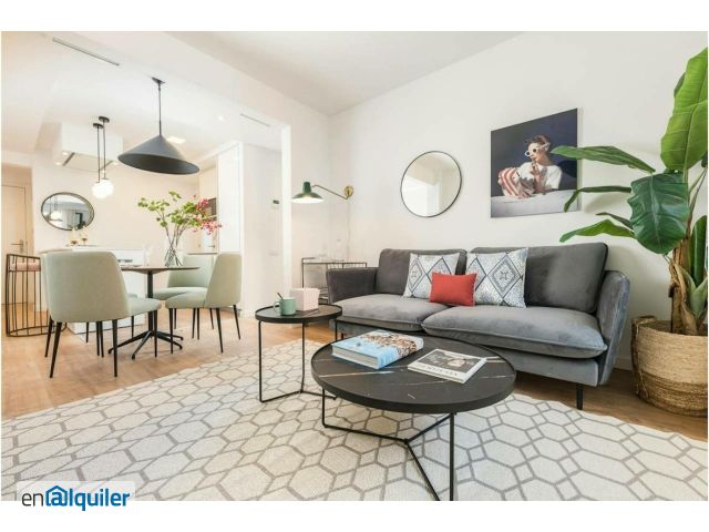 Magnifica vivienda de 2 dormitorios con terraza comunitaria en la azotea con vistas, en el barrio de (Les Corts) CONDICIONES DE ALQUILER: - Renta alquiler: (3.000?) - Depósito: 1 mes de depósito (devuelto al final del contrato): (3.000?) puede varias según documentación entregada - Gastos de suministro de agua, electricidad, gas e internet: incluido en el precio del alquiler - Servicio de administración: (3.000?) puede variar dependiendo de la duración del contrato - Limpieza semanal incluida en el precio DESCRIPCIÓN DE LA VIVIENDA: Ubicada en un edificio residencial con ascensor, distribuido en 60 metros cuadrados con 2 dormitorios y 1 baño completo. El salón comedor exterior a la calle, equipado con todos los muebles (sofá, mesa pequeña, mueble de TV, televisor, mesa de comedor con sillas). La cocina americana reformada, con todos los electrodomésticos (nevera, vitrocerámica, campana extractora, horno, microondas, lavadora-secadora), menaje de cocina completa. Con 2 dormitorios. El dormitorio principal tiene una cama doble de matrimonio, mesitas de noche y armario para ropa. Con un baño completo en suite con todos los sanitarios. El segundo dormitorio mediano tiene cama mediana, mesita de noche y armario para ropa. Una magnífica terraza comunitaria, con zona de sofá con mesa y sillas, tumbonas y una zona de comidas con una gran mesa de comer con cenador. Estupendo para estar en el exterior con el sol. CARACTERÍSTICAS DE LA VIVIENDA: - Aire acondicionado - Calefacción - Suelos de madera - Terraza comunitaria (Rooftop) - Limpieza semanal UBICACIÓN: Magnífica vivienda situada en el barrio de Les Corts. Rodeada de todo tipo de tiendas, bares, restaurantes, supermercados y zonas de ocio. Muy bien comunicado con medios de transporte.