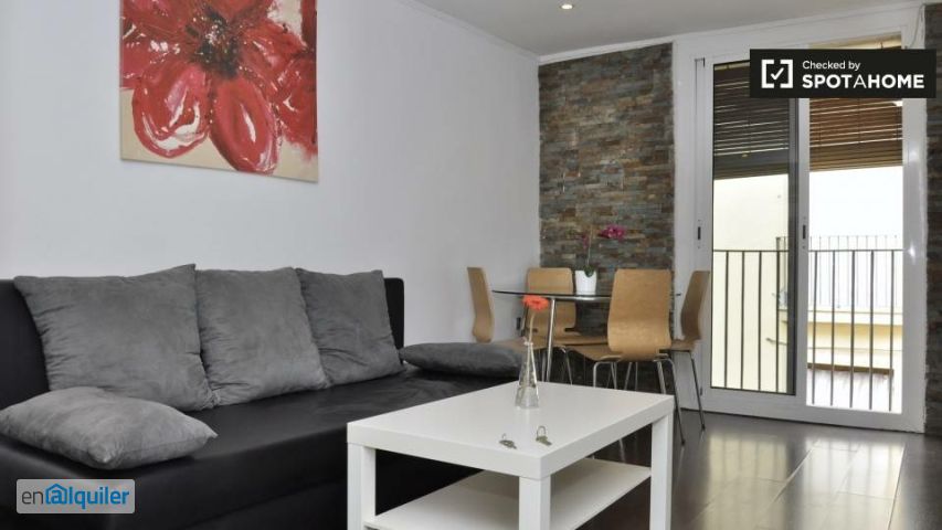 Bienvenido a este encantador apartamento de 1 dormitorio ubicado en el vibrante barrio de El Raval, Barcelona. Este apartamento, completamente amueblado, cuenta con aire acondicionado individual, lavadora y cocina equipada con horno y TV. Además, disfrute del amplio balcón, perfecto para relajarse al aire libre. Spotahome ha revisado personalmente esta propiedad, lo que garantiza altos estándares de calidad y confianza. Ideal para profesionales, parejas y estudiantes, pero no para familias. ¡Explora tu espacio ideal hoy mismo! Ubicado en el famoso barrio de El Raval, este apartamento te da acceso a lugares de interés como la Fuente de la Unión, La Fontena y el Mont Juic. Además, el Palacio Güell y las Calles de la Diversidad se encuentran a poca distancia, lo que enriquecerá tu experiencia cultural y de ocio. El barrio cuenta con una variedad de monumentos arquitectónicos y diversas actividades, lo que te permitirá sumergirte plenamente en el animado ambiente barcelonés.