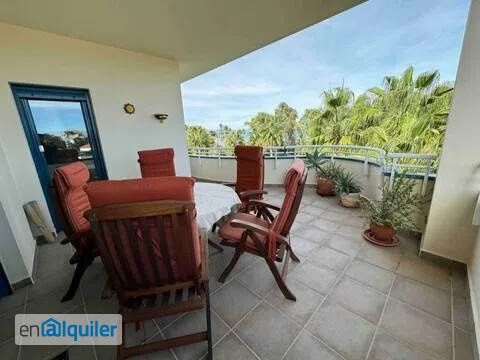 Precioso apartamento en primera línea de playa con vistas al mar Disponible desde septiembre hasta finales de mayo. La vivienda dispone de 2 dormitorios, 2 baños completos, un luminoso salón con cocina integrada y acceso directo a una amplia terraza con impresionantes vistas al mar. Es un lugar ideal para teletrabajar, disfrutar de la tranquilidad y del sonido del Mediterráneo. Perfecto para largas estancias, para pasar el invierno o simplemente para desconectar en un entorno privilegiado. La urbanización es tranquila.