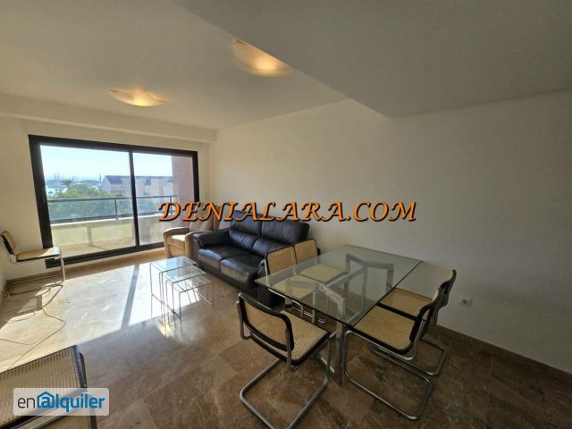 Se alquila piso en alquiler anual situado en una 5ª planta con ascensor en el puerto de Denia. Tiene 80metros distribuidos en 2 habitaciones dobles, 2 baños completos con bañera y ducha, 1 salóncomedor con salida a 1 terraza de unos 10 metros, 1 cocina independiente equipada y plaza de garaje.