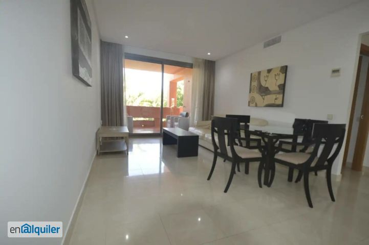 LARGA TEMPORADA¡ IMPRECINDIBLE SOLVENCIA ECONOMICA DEMOSTRABLE! Magnifica vivienda en la Nueva Milla de Oro, a menos de 10 minutos de Puerto Banús y Estepona. Es brillante y se beneficia de dos maravillosa terrazas soleadas con orientación este, sol de la mañana. Calidades de primera y recientemente amueblada con mucho gusto, el apartamento se compone de dos amplios dormitorios, cocina totalmente equipada con electrodomésticos de alta gama, dos baños completos, uno de ellos en suite. Una de las terrazas es muy amplia, para disfrutar todos los días del año. La urbanización no solo cuenta con esta increíble vivienda si no que ofrece espectaculares jardines, zonas de spa y gimnasio totalmente equipado, amplias piscinas comunitarias y seguridad 24 horas. En definitiva una vivienda a la alcance de todos pero con un toque moderno, nuevo y lujoso.
