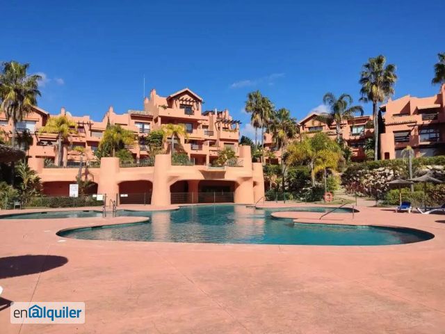 LARGA TEMPORADA¡ IMPRECINDIBLE SOLVENCIA ECONOMICA DEMOSTRABLE! Magnifica vivienda en la Nueva Milla de Oro, a menos de 10 minutos de Puerto Banús y Estepona. Es brillante y se beneficia de dos maravillosa terrazas soleadas con orientación este, sol de la mañana. Calidades de primera y recientemente amueblada con mucho gusto, el apartamento se compone de dos amplios dormitorios, cocina totalmente equipada con electrodomésticos de alta gama, dos baños completos, uno de ellos en suite. Una de las terrazas es muy amplia, para disfrutar todos los días del año. La urbanización no solo cuenta con esta increíble vivienda si no que ofrece espectaculares jardines, zonas de spa y gimnasio totalmente equipado, amplias piscinas comunitarias y seguridad 24 horas. En definitiva una vivienda a la alcance de todos pero con un toque moderno, nuevo y lujoso.
