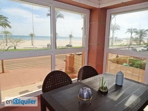 IMPORTENTE: Este apartamento se alquila unicamente a estudientes universitarios durante el curso, y por semanas y quincenas durante el verano. Apartamento de 2 dormitorios situado en primera línea de la playa de Gandía con vistas frontales al mar y situado en el centro del Paseo Marítimo. Con piscina y piscina infantil.CONSTA DE: 2 dormitorios (uno con cama de matrimonio y otro con dos camas) cocina equipada independiente, 2 cuartos de baño, uno con bañera y otro con ducha, salón con cama supletoria y terraza con vistas frontales al mar. *DISPONE DE AIRE ACONDICIONADO FRIO - CALOR CENTRALIZADO, EN TODA LA CASA.*CONEXIÓN WIFI EQUIPADO CON: TV, Lavadora, vitro, LAVAVAJILLAS horno, frigorífico, microondas, tostador, plancha y tabla de planchar.SUMINISTRAMOS: Ropa de cama, toallas de Ducha y de lavabo (No de playa), trapos de cocina, vajilla y menaje cocina.