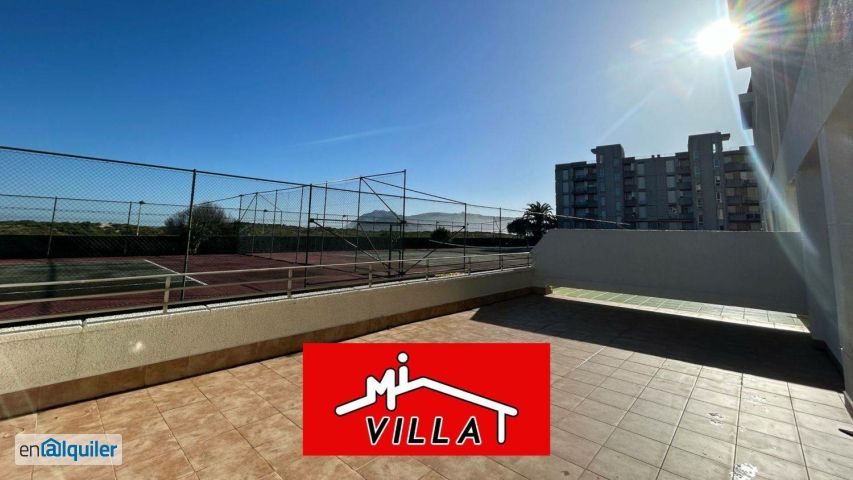 ¡Piso en primera línea de playa en urbanización con piscina! Solo disponible agosto Otras fechas consultar Desde Inmobiliaria Mi Villa les presentamos este piso con una amplia y soleada terraza exterior, perfecta para disfrutar en los meses de verano. La vivienda dispone de tres habitaciones, dos de ellas con cama de matrimonio y otra con cama nido. Cocina independiente completamente equipada con horno, vitrocerámica, lavavajillas, cafetera, lavadora y tostador. Dispone de dos baños completos con bañera y un amplio salón comedor con acceso a un balcón con bonitas vistas a los jardines y con acceso a una terraza muy de gran tamaño. El inmueble forma parte de una urbanización privada en primera línea de playa con piscina comunitaria, dos pistas de tenis, zona infantil y amplias y cuidadas zonas verdes.