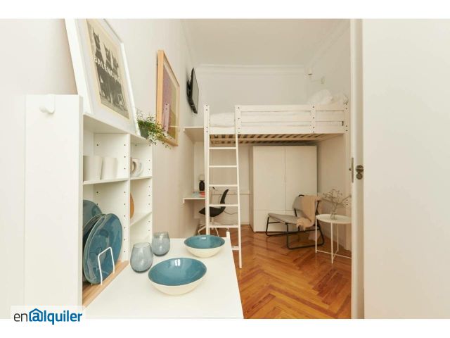 STUDIO E is a cosy space with a private bathroom within a shared flat. With a Smart TV and a desk, this studio is an example of discreet and functional luxury. (*) Furthermore, the studio has a wardrobe, air conditioning, heating, and allows you access to the optional full linen service. In addition to the studio, we offer a unique experience with spacious common areas designed to combine comfort and practicality. These include: - A fully equipped kitchen-dining room, thoughtfully designed so that each resident has their own space and can enjoy it comfortably. - A welcoming and light-filled living room, featuring a large Smart TV and a games table. - The laundry room is fitted with an industrial washing machine and dryer, so you won?t have to worry about anything. Our studios are located in the historic heart of a vibrant city, directly facing one of Madrid?s oldest squares, Plaza de la Villa, and just a short walk from the Royal Palace, Almudena Cathedral, the Opera House, and the Reina Sofía School of Music. Every day in the Palacio neighbourhood is a new adventure. Discover the Royal Palace, the Opera House, and the majestic Almudena Cathedral. Enjoy shops, restaurants, and bars that make each day truly unique. Join this one-of-a-kind experience and discover the authentic essence of Madrid! (*) The small kitchen in this studio does not include a ceramic hob or a cooker. However, it does feature a microwave with a grill function.