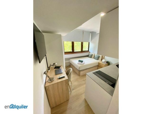 Live in Coliving in Avenida de la Reina Victoria and enjoy a fully equipped space with all expenses included. Ideal for young professionals, couples and students. Looking for a place to live, study and socialise in Madrid? Our coliving in Avenida de la Reina Victoria is your ideal option. This coliving is perfectly located in a central and well-connected area, just a few minutes away from Ciudad Universitaria and Moncloa. The nearby metro station and bus stops will allow you to move around the city with ease, as well as having supermarkets, bars, restaurants and green areas such as the Dehesa de la Villa Park to disconnect or play sports. In addition, your stay includes: All utilities (water, electricity and gas) with no extra surprises. Free high-speed WiFi. Weekly cleaning of the common areas so that you will always find a clean and tidy space. Bi-weekly cleaning of the studio with linen change, so you can forget about having to do the laundry of the bed linen. At our coliving, we know how important it is to feel welcome in a new home. We organise events and activities so that you can quickly integrate into our community, sharing your experience with like-minded people. This studio has: Double bed, bed linen provided. Air conditioning to keep you comfortable in all seasons. Fully equipped kitchen so you can cook from day one. Full bathroom with everything you need.