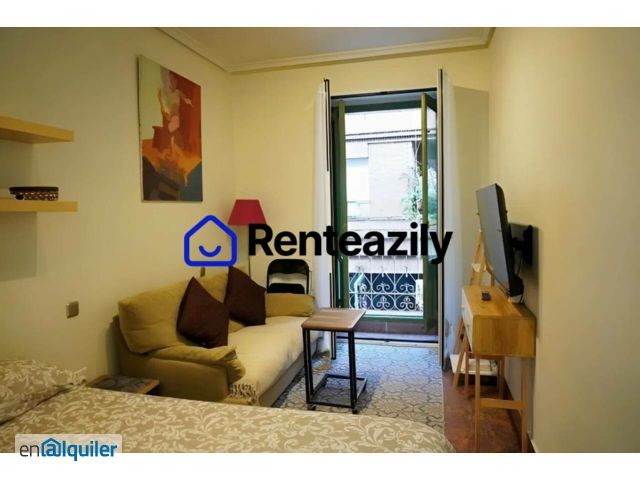 Ubicado en la 1ª planta sin ascensor de la calle Velarde, este estudio exterior con balcón se alquila amueblado y muy bien distribuido, con cama doble y armario, zona de estar con sofá y mesa para dos personas, cocina independiente equipada con vitrocerámica, horno, microondas, frigorífico y lavadora, y baño con cabina de ducha, ofreciendo un espacio cómodo y funcional para una o dos personas en pleno centro de Madrid. Aire acondicionado frío/calor por split, wifi, suelos de baldosa, cocina independiente equipada Transportes cercanos Metro: Tribunal (L1, L10), Bilbao (L1, L4), San Bernardo (L2, L4) Autobuses: 1, 2, 46 Precio: 1.000 ?/mes Fianza: 1 mes legal (1.000 ?) + 1 mes adicional solicitado por el propietario Gastos de comunidad incluidos. Suministros a cargo del inquilino. Certificado energético: E Emisiones CO?: E Exclusividad: Renteazily