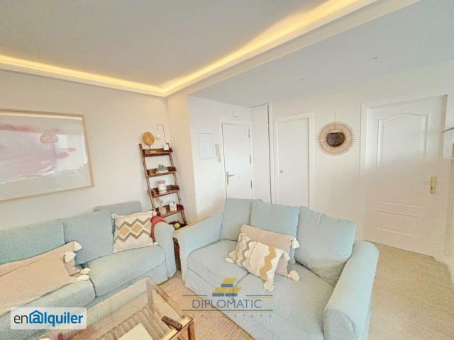 Diplomatic Real Estate ofrece piso con piscina climatizada todo el año, jardín y solárium y gimnasio. 1 plaza de garaje para 1 coche y 1 moto con acceso directo, trastero y lavandería comunitaria incluida en el precio. Se alquila con muebles y se vende vacío. Dispone de salón comedor con ventanales al exterior. 2 dormitorio, uno de ellos con baño en suite 2 baños con bañera. Cocina amueblada y equipada con electrodomésticos primera calidad. Armarios empotrados. Ventanas con rotura puente térmico que aísla de ruidos y de la temperatura exterior Calefacción central y aire acondicionado Vigilancia 24 horas. Esperamos su llamada,91 564 77 00-www.diplomatic.es Diplomatic Real Estate con más de 25 años en el sector inmobiliario y una amplia cartera de viviendas de lujo, locales, oficinas y edificios ofrece asesoramiento completo a sus clientes tanto en alquiler como en compra venta de inmuebles.