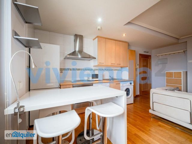 VIVIENDA DE TEMPORADA. Estudio exterior de lujo en Reina Victoria. Vivienda2 pone a tu alcance vivir en Chamberí, ubicado en un enclave privilegiado ya que nos encontramos a escasos metros de Cuatro Caminos, Bravo Murillo y a cinco minutos andando de Nuevos Ministerios. La zona nos ofrece un abanico amplio de ventajas y oportunidades con todo tipo de servicios imaginables, supermercados, grandes superficies, gimnasios, bancos, pequeño comercio, colegios, centros de salud... Las comunicaciones son excelentes disponemos de las lineas de autobuses ( 3, 37, 45, 66, 124, 127, 128, 149, C1, C2, F y N23 ) ademas de las lineas de metro de Madrid ( 1, 2 y 6 ) sin dejar de mencionar la estación de Nuevos Ministerios con linea directa al aeropuerto y las lineas de cercanías que dicha estación ofrece. La vivienda se ubica en una finca de reciente construcción la cual dispone de portero físico, piscina y pista de squash. Ubicada en una séptima planta dispone de cuatro ascensores. Se compone de un espacio abierto lo cual nos abre una cantidad de posibilidades inmensas ala hora de distribuir la vivienda. El salón es muy amplio y cuenta hasta con zona de comedor con una cómoda barra. Dispone de una cocina totalmente amueblada y equipada con: horno, vitroceramica, campana extractora, nevera grande, lavadora, lavavajillas y microondas. El dormitorio se puede crear un espacio a parte ya que disponemos de una cortina que le da privacidad y separa ambientes. El cuarto de baño es completo de cuatro piezas con bañera y ventilación natural. Posibilidad de alquilar plaza de garaje en finca. Todos los suministros de la vivienda son individuales eléctricos ( agua y electricidad ). Las condiciones de alquiler son: fianza, garantías y honorarios de agencia.