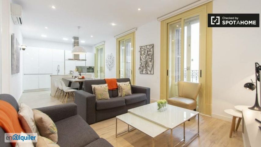 Este espacioso apartamento de 2 dormitorios en Sol, Madrid, ofrece una combinación de comodidad y conveniencia. Está completamente amueblado y equipado con electrodomésticos modernos para una experiencia de vida sin preocupaciones. Entre sus características principales se incluyen aire acondicionado individual, lavadora, lavavajillas, horno y TV. La propiedad exterior también cuenta con un balcón, un espacio ideal para relajarse. Spotahome lo revisa personalmente para garantizar la información verificada y la calidad. Ubicado en el vibrante barrio de Sol, el apartamento se encuentra cerca de numerosos lugares de interés, como la Puerta del Sol, el Kilómetro Zero, la Plaza del Carmen y la Estación de Renfe de Sol, a poca distancia a pie. Su ubicación privilegiada permite a los residentes disfrutar plenamente de la dinámica cultura y el estilo de vida madrileños.