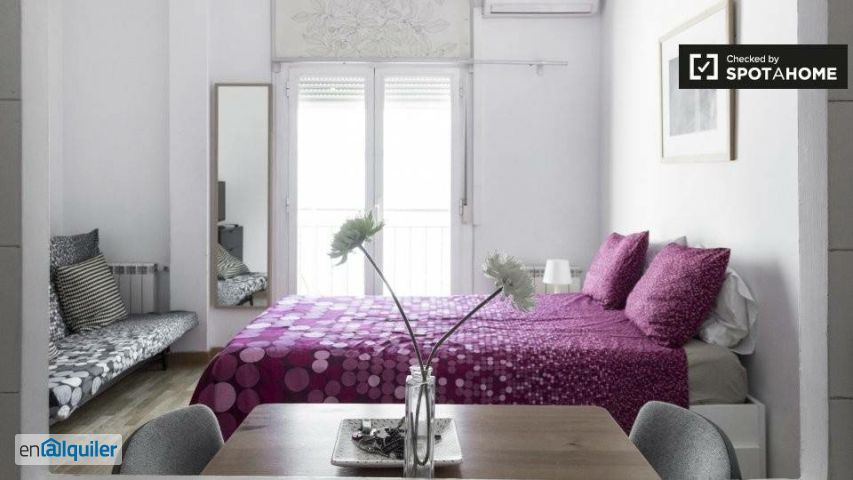 Este estudio en la calle Conde de Romanones, en Centro, está ubicado en un edificio con una hermosa piscina compartida. La acogedora propiedad de 35 m² tiene una zona de dormitorio y de estar combinada con una cama doble, televisión y una cocina con todo lo necesario para cocinar y una lavadora. Desde esta fantástica ubicación central podrá caminar hasta la Puerta del Sol y la Plaza Mayor en solo 5 minutos. Encontrará una fantástica variedad de tiendas, cafeterías y restaurantes en las calles que rodean el apartamento. El metro para a 2 minutos.
