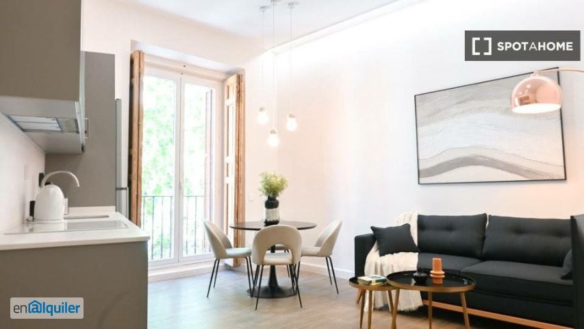 Descubre este encantador estudio amueblado en alquiler en Palacio, Madrid. Está totalmente equipado con comodidades modernas, incluyendo lavadora en zona compartida, horno y conexión Wi-Fi comunitaria. Además, cuenta con un balcón donde podrás disfrutar de una mañana soleada o una tarde tranquila. El edificio dispone de ascensor para mayor comodidad. Ten en cuenta que no se permite fumar ni se admiten mascotas, y que no hay aire acondicionado. Situado en Palacio, este estudio se encuentra cerca de importantes atracciones turísticas como el Mural de los Tercios Españoles, el Convento de La Latina y el Arco de la Calle de Gerona, todos a poca distancia a pie. Disfruta de la vibrante cultura e historia de la zona a un paso.