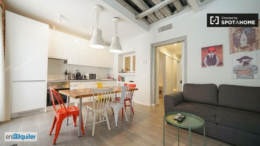 Este espacioso apartamento de 3 habitaciones en Universidad cuenta con calefacción central y está completamente amueblado para su comodidad. La propiedad incluye balcón o terraza, lavadora, secadora y lavavajillas privados para su comodidad. Además, todos los gastos de electricidad, agua, gas y wifi están incluidos en el precio del alquiler, y se proporciona ropa de cama. Se admiten mascotas con algunas restricciones y no se permite fumar. Spotahome ha revisado personalmente este anuncio para garantizar su calidad y fiabilidad. Ubicado en Universidad, Madrid, el apartamento está cerca de numerosos lugares de interés. Cerca se encuentran la Plaza de San Ildefonso, La Joven Caminando, Fotos-Joaquín Sabina y La Estudiante de Malasaña, entre otros lugares importantes. El barrio ofrece lugares de interés cultural y un entorno vibrante, lo que lo convierte en un lugar ideal tanto para profesionales, parejas, familias, estudiantes y estudiantes Erasmus.