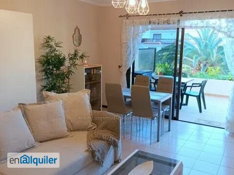 Se alquila para larga temporada apartamento de un dormitorio bien cuidado en la zona residencial de El Tope. La vivienda se encuentra en la primera planta y se puede disfrutar de la piscina y del jardín comunitario. El apartamento dispone de dos terrazas que suman 27 metros cuadrados, una con vistas al jardín y la otra a la carretera del Botánico. Está completamente amueblado, reformado y equipado. Se compone de salón comedor desde el que se accede a la terraza delantera y también a la cocina separada por puerta corrediza, un baño con amplia ducha, dormitorio de matrimonio y un espacioso armario empotrado. El apartamento queda cerca de toda clase de negocios y de paradas de transporte público.