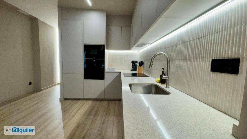 - Cocina independiente, totalmente equipada con horno, campana, placa de inducción, nevera, lavadora, lavavajillas