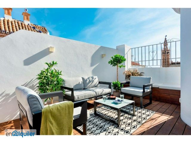 Magnificent duplex apartment located on the third floor of a beautiful classic building in the historic center of Seville. Upon entering the house there is a fully equipped modern open plan kitchen and living room. The living room area is on the left side and it is Chapineros street, there is a double sofa-bed (1.40 x 1.90 m). From the living room there is a direct access to the first bedroom with two single beds (0.90 x 1.90 m) and a separate bathroom with shower. The upper floor can be reached by stairs from the living room. There is the second bedroom with a double bed (1.35 x 1.90 m), the second bathroom with a shower and the exit to a beautiful private terrace, furnished with wooden furniture and with wonderful views of the Cathedral and the Giralda tower. The apartment is located in the historic center of the city, on the corner of Francos and Chapineross streets. A few meters from the apartment the Town Hall, the Cathedral and the Giralda tower are located. The apartment is also very close to the Alcázar, the Archivo de Indias and the Torre del Oro. The neighborhood where the apartment is located has wide variety of tapas bars and restaurants where you can taste the best Andalusian cuisine, as well as countless brand stores and supermarkets. The booking of each (hidden) accommodation includes the offer of extra experiences or activities to improve your experience, which are managed by external providers, who will inform you by e-mail or (hidden), and you can contract or refuse them. For more information about the management of experiences and extra activities of the accommodations, please visit our Privacy Policy on our official website. ** For monthly stays, water and electricity supplies will be included up to a maximum of ? 100 per month. If the expenses are higher, the guest will have to pay the difference. The corresponding invoice will be sent by the accommodation to the guest to verify the expenses** During your stay, the access to the property is limited exclusively to the number of individuals specified at the booking process. Consequently, entry to the property is strictly prohibited for persons not registered as guests. Failure to adhere to this rule will result in an additional charge amounting to 50% of the total cost of the stay as a penalty, or alternatively, immediate expulsion from the accommodation.
