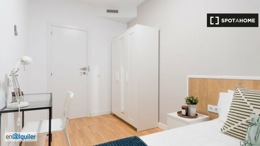 Spotahome presenta con orgullo esta habitación interior en un piso compartido de 11 habitaciones, ubicado en el centro de Fuente del Berro, Madrid. Spotahome ha revisado esta habitación profesionalmente, lo que garantiza una opción de alquiler fiable y verificada. El piso cuenta con aire acondicionado central, calefacción eléctrica, lavadora y cocina equipada. No se permite fumar ni se admiten mascotas. No se admiten parejas, y la propiedad es ideal para trabajadores y estudiantes de posgrado. El piso se encuentra en Fuente del Berro, una animada zona de Madrid con diversas atracciones cercanas. Varios lugares emblemáticos, como el Monumento al Doctor Fleming y la Estatua de José Cubero "yiyo", se encuentran a poca distancia a pie. Hay una amplia oferta gastronómica, con restaurantes como el Capote Ventas y 212 Bistro en las inmediaciones.