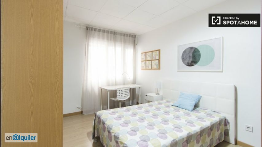 Hay habitaciones para alquilar en este espacioso apartamento de 8 habitaciones, ubicado en la Avenida de América en la vibrante Prosperidad. Los espacios compartidos en el apartamento de 226 m² incluyen una cocina bien equipada, una cómoda sala de estar y 3 baños. Prosperidad es un lugar popular para establecerse en Madrid, y tiene algunas de las mejores conexiones con el resto de España en tren. Un corto paseo desde este apartamento lo encontrará en la estación de metro de Cartagena, o quizás un fantástico restaurante para probar.