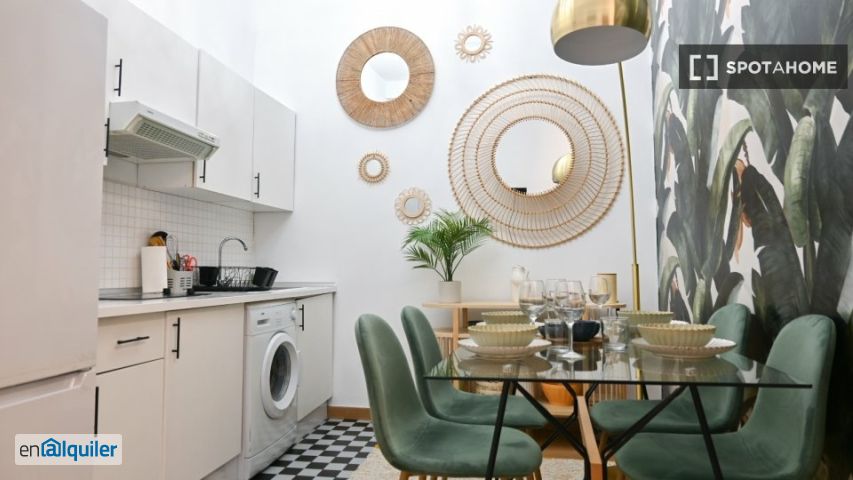 Este elegante apartamento de 2 dormitorios está disponible para alquilar en el codiciado barrio de Cortes, Madrid. La propiedad está completamente amueblada y cuenta con aire acondicionado individual, cocina equipada con horno y lavavajillas, y lavadora compartida. Dispone de internet. Ubicado en la vibrante zona de Cortes, encontrará una gran variedad de atracciones turísticas a poca distancia, como la Calle de León, el Ateneo de Madrid, la Plaza del Ángel y la Calle de las Huertas. Sumérjase en la rica oferta cultural de esta propiedad bien ubicada, verificada por Spotahome.