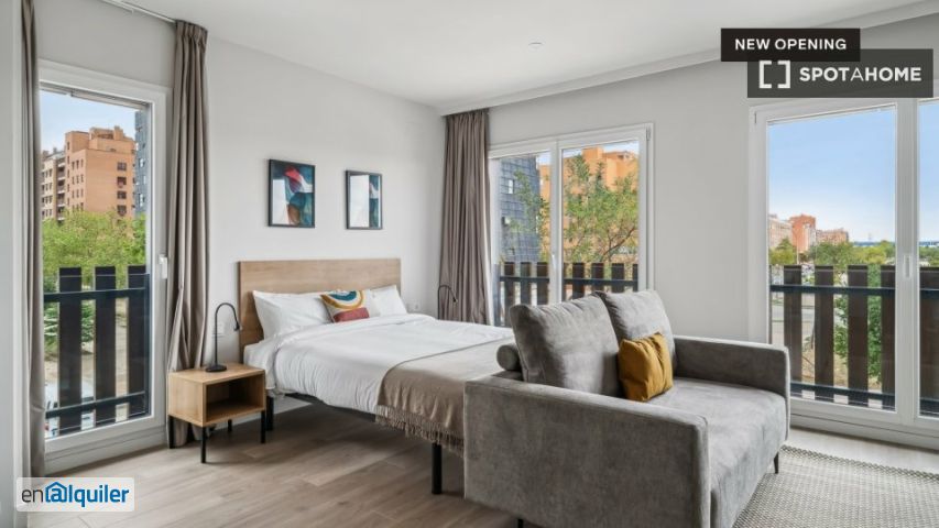 Con elegantes estudios y apartamentos de 1 y 2 dormitorios, este moderno edificio es la solución ideal para disfrutar de estancias flexibles en Madrid. Ubicado en el Ensanche de Vallecas, este alojamiento ofrece un estilo de vida integrado que se adapta a diferentes estilos de vida, incluyendo espacios completamente amueblados y servicios de primera clase. Los residentes pueden disfrutar de un momento de relax en la terraza y la piscina, ponerse en forma en el gimnasio o disfrutar de una noche de cine en la sala de cine. El edificio también incluye espacios de coworking y salas de reuniones, ideales para la productividad y la concentración, así como salas comunes y zonas ajardinadas exteriores. Disfrute de la máxima privacidad y comodidad en su propio estudio. Este espacio, totalmente equipado y amueblado, incluye una elegante sala de estar para relajarse y desconectar, una pequeña cocina para preparar sus platos favoritos y un baño privado. Planta: 7. ª