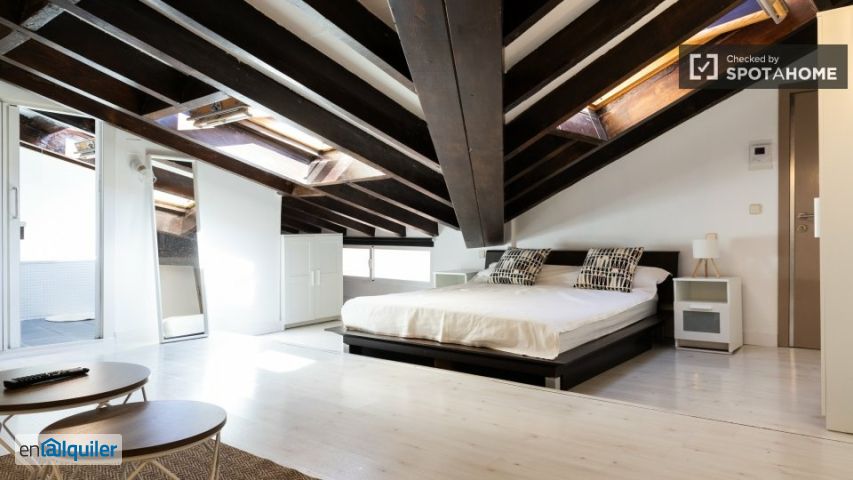 Apartamento estudio amueblado en alquiler en c. Del Sacramento. La propiedad se encuentra en el 4To piso de un edificio con ascensor. La propiedad incluye cocina equipada, lavadora, aire acondicionado y lavavajillas.