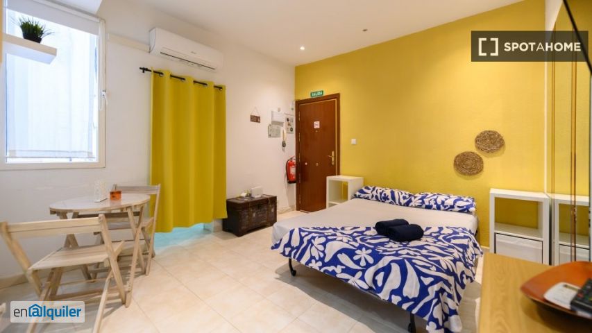 Este estudio en Embajadores es un espacio acogedor, completamente amueblado y equipado. La cocina está lista para tus necesidades culinarias y cuenta con aire acondicionado individual para mayor comodidad. El anuncio incluye internet, lo que proporciona una conexión fluida. La propiedad ha sido revisada por Spotahome, lo que garantiza su fiabilidad. Situado en el vibrante barrio de Embajadores, encontrarás varios puntos de interés en las inmediaciones. A poca distancia se encuentran la Iglesia Católica, el Barrio de Sol Madrid y otras atracciones turísticas, lo que lo convierte en un lugar privilegiado para disfrutar de la tranquilidad y explorar la ciudad. Descubre la rica cultura y las prácticas comodidades que rodean esta casa.