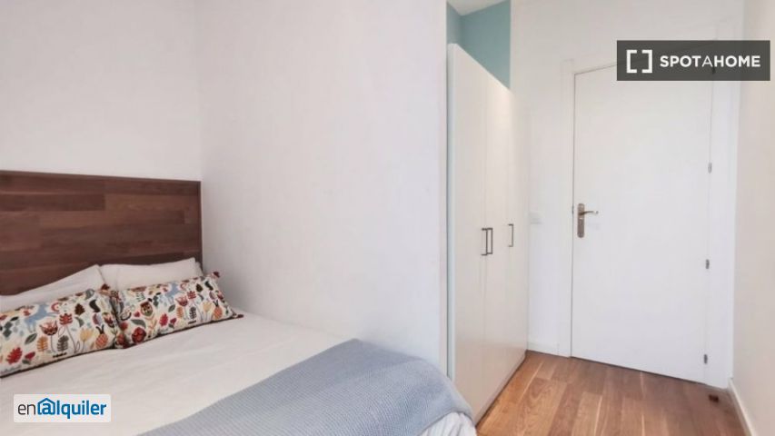 Este moderno piso de 140 m² y 9 habitaciones en Lavapiés dispone de habitaciones para alquilar perfectas para profesionales y estudiantes. El apartamento es muy elegante con suelos de madera y una decoración moderna. Las habitaciones con cama individual y con cama doble están separadas por 2 pasillos largos y también tienen una llave para la privacidad. Hay una cocina y sala de estar de planta abierta y 2 baños completos para compartir. Lavapiés es un barrio popular de Madrid, conocido por su ambiente animado y sus restaurantes internacionales. Estás a unos segundos a pie del metro y a 15 minutos de la estación de tren de Atocha, ¡ideal para viajar! Importante: Este arrendador ha puesto fuera de servicio 1 habitaciones en este piso para mantener la distancia segura y una buena convivencia. Hay 9 habitaciones en el piso pero solo 8 en alquiler