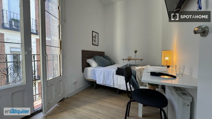 Se alquilan habitaciones en un apartamento amueblado de 4 habitaciones en la c. De Caravaca. El piso se encuentra en la 3. ª planta de un edificio sin ascensor. Ofrece vistas a la ciudad y cocina equipada.