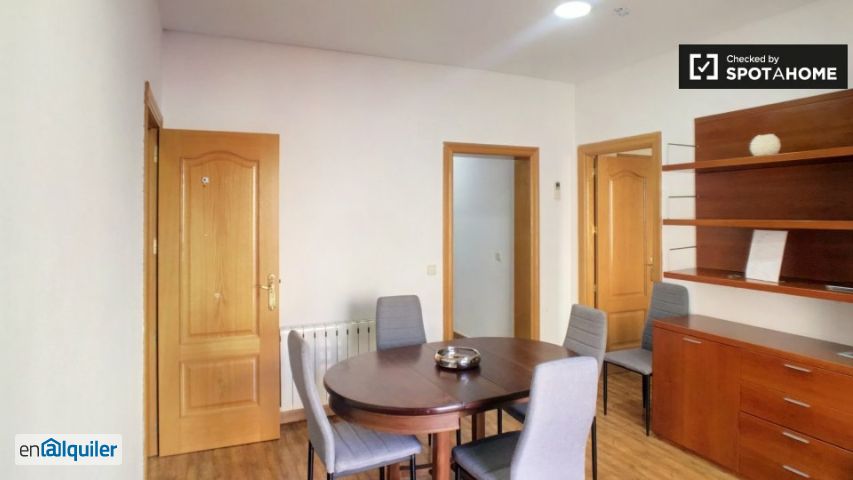 Este apartamento de 3 dormitorios en la zona de Palos de Moguer, Madrid, está completamente amueblado y equipado para su comodidad. La propiedad cuenta con aire acondicionado individual, calefacción central y una cocina totalmente equipada con lavavajillas y horno. También dispone de lavadora. El wifi está incluido para el uso de los inquilinos. No se permite fumar ni se admiten mascotas. Spotahome ha revisado el apartamento personalmente, lo que garantiza una experiencia de vida de calidad. Palos de Moguer es un barrio animado de Madrid con numerosos lugares de interés cultural y opciones gastronómicas. Entre las atracciones cercanas se incluyen la Parroquia María Auxiliadora, plazas como Ésta es Una Plaza y la Plaza del Emperador Carlos v, entre otras. Restaurantes como Kushuro y Sushimore Atocha también están cerca, ofreciendo una variedad de cocina internacional para explorar durante su estancia.