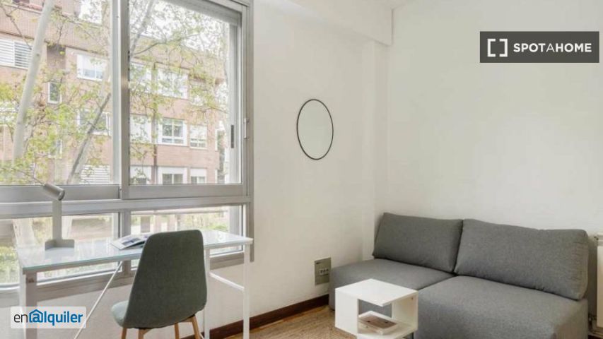 Descubre una cómoda y práctica habitación en un piso compartido de 10 habitaciones en el encantador barrio de Atalaya. Este piso, totalmente amueblado, cuenta con comodidades como aire acondicionado central, lavadora y cocina totalmente equipada con lavavajillas y horno. Los gastos de agua, luz, gas y wifi están incluidos en el alquiler. El piso es accesible para profesionales y estudiantes, pero es importante tener en cuenta que no se permite fumar, ni se admiten mascotas ni parejas. Spotahome ha revisado minuciosamente esta propiedad, garantizando que sus condiciones y características estén debidamente verificadas. Atalaya ofrece un ambiente vibrante con una amplia gama de servicios y atracciones en las inmediaciones. La propiedad está bien comunicada con opciones como la Universidad Francisco Marroquín y la Escuela de Negocios Eude, a poca distancia a pie. Para comer, prueba Bambú Garden, un restaurante chino, o la Tabernita, con un toque mediterráneo. Puedes hacer tus compras esenciales en supermercados cercanos como Supermercado y Udaco. Descubre la comodidad y la accesibilidad en esta fantástica habitación en alquiler en Atalaya, Madrid.
