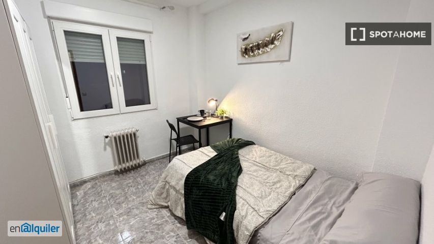 Explora este maravilloso apartamento compartido de 5 habitaciones en Fuenlabrada, Madrid. La propiedad cuenta con cocina totalmente equipada, calefacción central, agua caliente central y un encantador balcón para relajarse. Además, el apartamento incluye lavadora común y evita el uso del lavavajillas, lo que garantiza una vida diaria cómoda. Se permite fumar. No se admiten mascotas ni invitados. Aunque no se admiten parejas, ¡tanto profesionales como estudiantes son bienvenidos! Todos los servicios están incluidos y la propiedad ha sido verificada por Spotahome, lo que garantiza los mejores estándares para tu nuevo hogar. Situado en la vibrante zona de Fuenlabrada, encontrarás una variedad de restaurantes como el Restaurante Fuentelabrada y el Daytona a un corto paseo. También encontrarás atracciones locales como el mural "mirar a Través de Las Estaciones" cerca para que disfrutes del ocio y la inspiración.