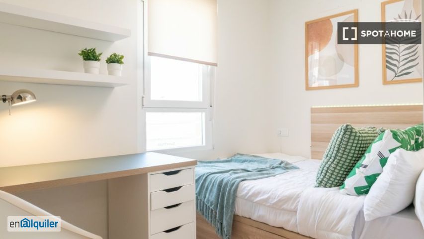 ¿buscas una habitación para alquilar? Esta habitación exterior, totalmente amueblada, forma parte de un piso compartido de 6 habitaciones en Valverde, Madrid. La propiedad cuenta con cocina equipada, lavadora, secadora y acceso para profesionales y estudiantes. Spotahome ha verificado este alquiler para garantizar que tu próximo hogar se adapte perfectamente a tus necesidades. No se admiten parejas ni mascotas. Valverde, en la zona madrileña de Fuencarral-El Pardo, ofrece excelentes servicios, como Mercadona y restaurantes como Izumi Sushi y el Fogón de Tetes. Atracciones turísticas como la Plaza de la Madre María Molas también están cerca, lo que hace que esta ubicación sea práctica y atractiva.