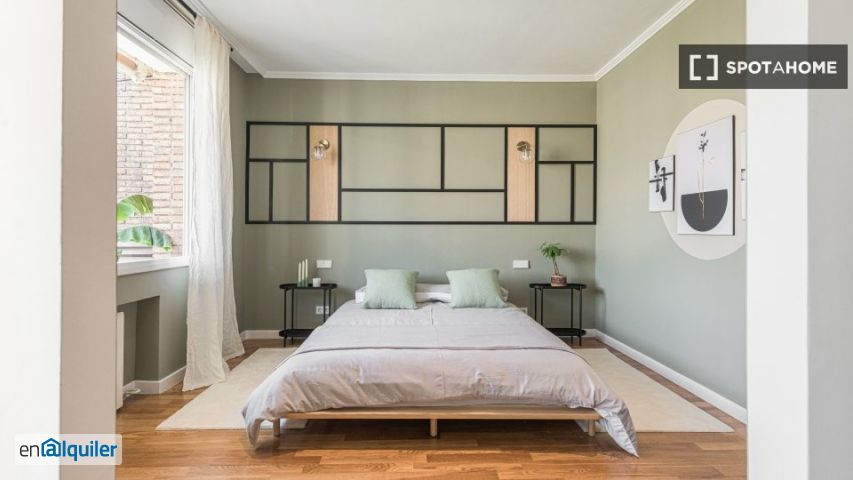 Se alquilan habitaciones en piso compartido en Barcelona. El alojamiento incluye calefacción, lavavajillas, lavadora y secadora. También incluye limpieza semanal de las zonas comunes. También dispone de plancha y aspiradora. Se proporcionan sábanas y toallas.