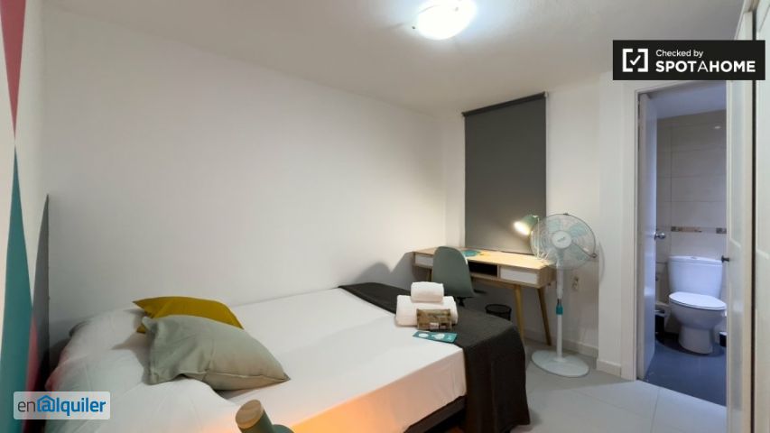 Esta acogedora habitación en un apartamento compartido de 5 habitaciones en el Gòtic, Barcelona, ofrece un espacio completamente amueblado con cocina equipada y lavadora privada. El apartamento es interior y ha sido revisado por Spotahome, lo que garantiza su calidad e idoneidad. Tenga en cuenta que no se permiten mascotas ni fumar en la propiedad. Aunque el wifi está incluido, los demás servicios deben pagarse al propietario y el servicio de limpieza tiene un coste adicional. Ubicado en el vibrante barrio de el Gòtic de Barcelona, el alojamiento está rodeado de atracciones turísticas emblemáticas, como el Ascensor Directo al Jardín de la Casa Ignacio Puig, la Plaza Real y la Casa Natal de Joan Miró, entre otras. Su céntrica ubicación garantiza un fácil acceso al casco antiguo y a otros lugares de interés, lo que lo convierte en el alojamiento ideal para profesionales, estudiantes y parejas que buscan una emocionante experiencia de vida urbana.