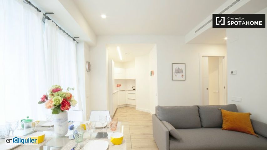 La Gran Universidad _porque estás cerca de un campus principal_ ¿me gustará aquí? Seguro. Usted está en la Gran Vía comercial y grande y está a solo 1 minuto de la Universidad de Barcelona. ¿de Verdad? Dime más le encantará la ubicación, así como la decoración interior. Tiene una sala de estar y cocina de planta abierta y acceso a una impresionante piscina. Creemos que el apartamento es perfecto para profesionales y estudiantes que buscan vivir en una propiedad moderna y central. Sus 3 razones principales para vivir aquí: - te sentirás como un rey cuando vayas a nadar en la impresionante piscina cubierta. - Nos encanta la amplia y luminosa sala de estar y la cocina que también tiene un balcón. - Estás en una excelente ubicación central, perfecta para estudiantes y profesionales. Pero necesitas saber esto - Viviendo aquí, saldrás a calles concurridas y bulliciosas. Ayúdame a decidirme Este es un apartamento de 1 dormitorio en la Gran Vía de les Corts Catalanes, Barcelona. Este moderno apartamento tiene una decoración elegante y acceso a áreas comunitarias de lujo. Es perfecto para ti si buscas vivir en un vecindario de una gran ciudad.