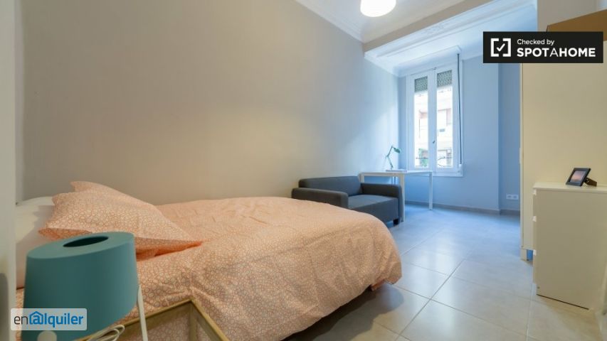 Hay habitaciones para alquilar en este apartamento de 5 dormitorios situado en la calle Sueca, en el popular barrio de l'eixample. Los espacios compartidos en el apartamento de 120 m² incluyen una cocina moderna con acceso al balcón y un amplio baño. Vivir en l'eixample es perfecto si eres una mariposa social que disfruta comer fuera. Este apartamento está a pocos pasos de una gran variedad de restaurantes y bares, pero si desea explorar el área metropolitana de Valencia, la estación de Bailén está a solo 11 minutos. ¡disfrutar!